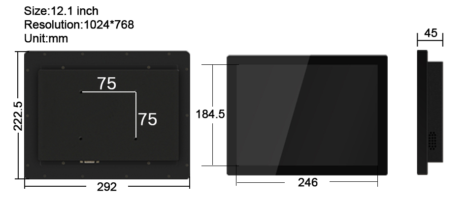 12.1 Inch embedded industrial touch monitor, capacitive touch, front panel waterproof, optional VGA/DVI/HDMI interface