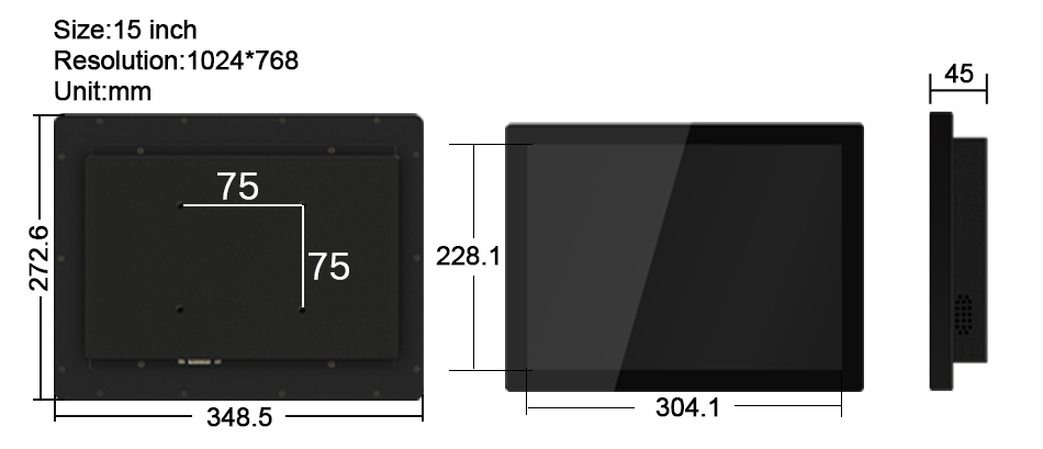 15 Inch embedded industrial touch monitor, capacitive touch, front panel waterproof, optional VGA/DVI/HDMI interface