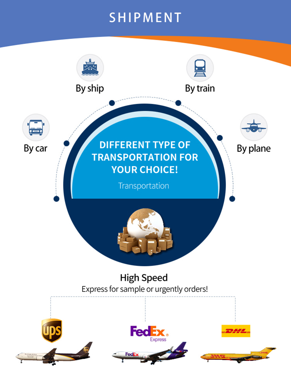 Usually we choose DHL, UPS, Federal and other express companies to ship. The delivery preparation period is 2-7 days, and the express delivery time is 5-20 working days (except for special circumstances).